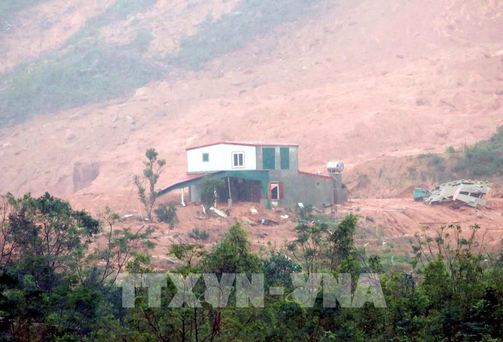 Vụ sạt lở đất ở xã Cẩm Trung vùi lấp một ngôi nhà và hư hỏng 03 trang trại. Ảnh: Công Tường-TTXVN