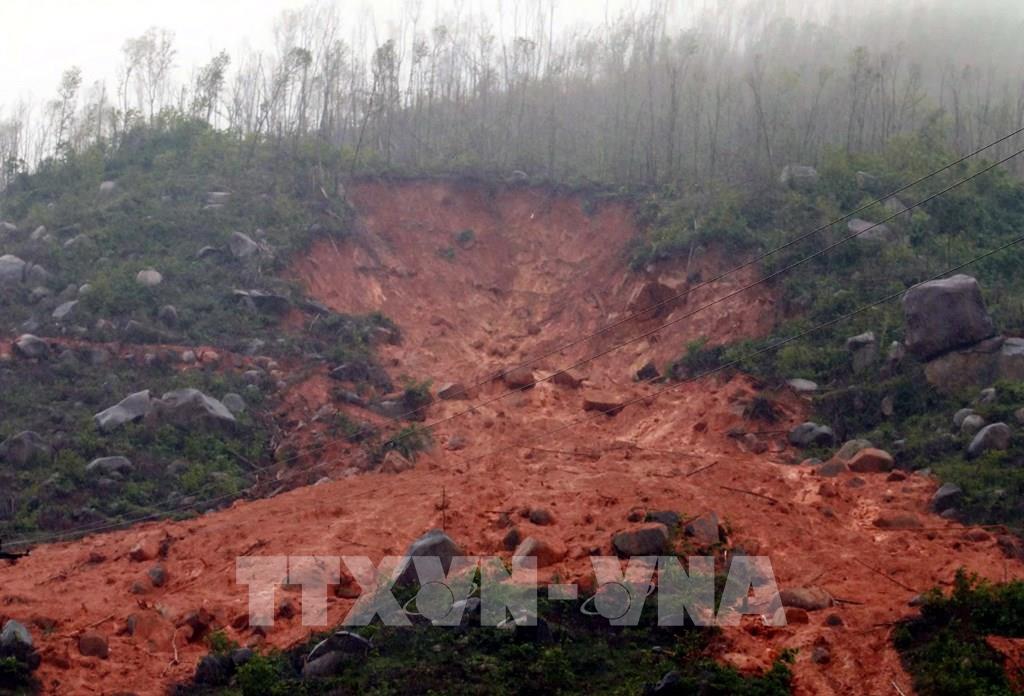 Sạt lở núi uy hiếp đến đời sống người dân. Ảnh: Công Tường-TTXVN