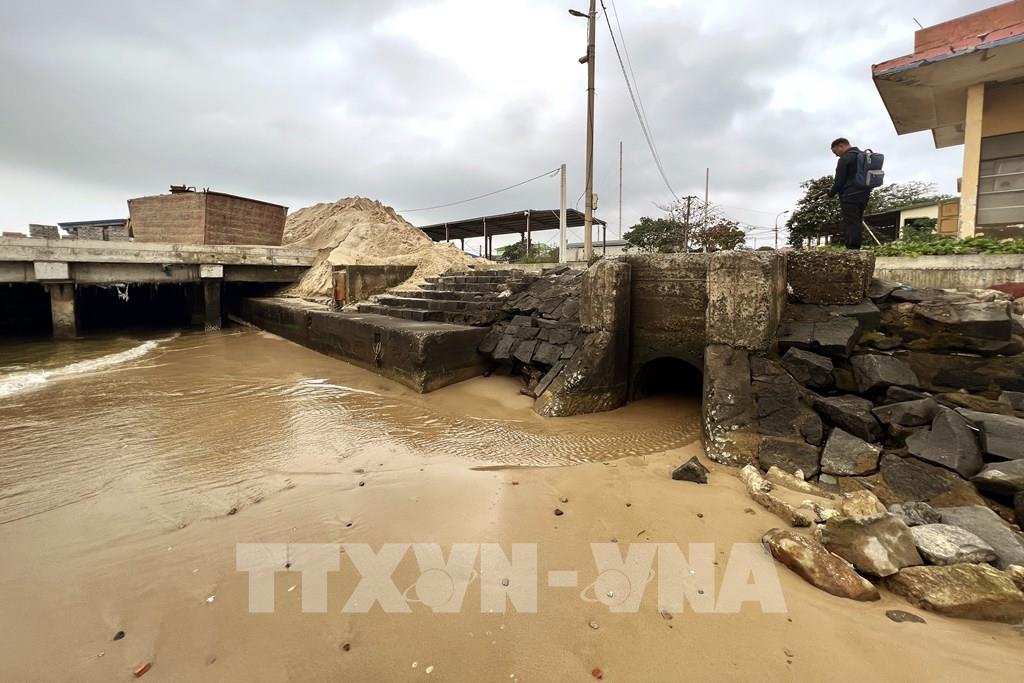 Hệ thống xử lý nước thải của Cảng cá Cửa Tùng đã bị tê liệt hoàn toàn, nước thải từ các cơ sở sản xuất, kinh doanh đang xả trực tiếp ra môi trường. Ảnh: Nguyên Linh-TTXVN