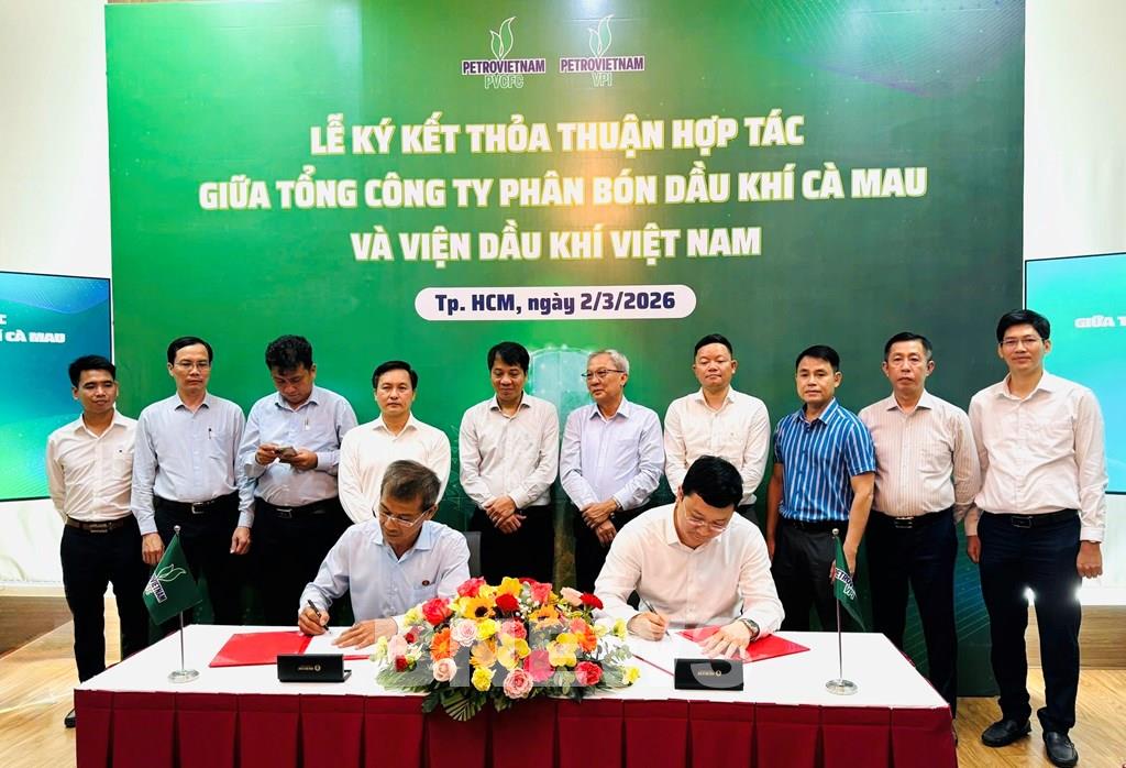 Ngày 2/3, hai đơn vị thành viên của Tập đoàn Công nghiệp-Năng lượng Quốc gia Việt Nam (Petrovietnam) là Tổng công ty Phân bón Dầu khí Cà Mau (PVCFC) và Viện Dầu khí Việt Nam (VPI) đã ký Biên bản ghi nhớ (MOU) và Hợp đồng hợp tác phát triển nghiên cứu, ứng dụng kết quả nghiên cứu khoa học, dịch vụ khoa học công nghệ và đào tạo nguồn nhân lực.
