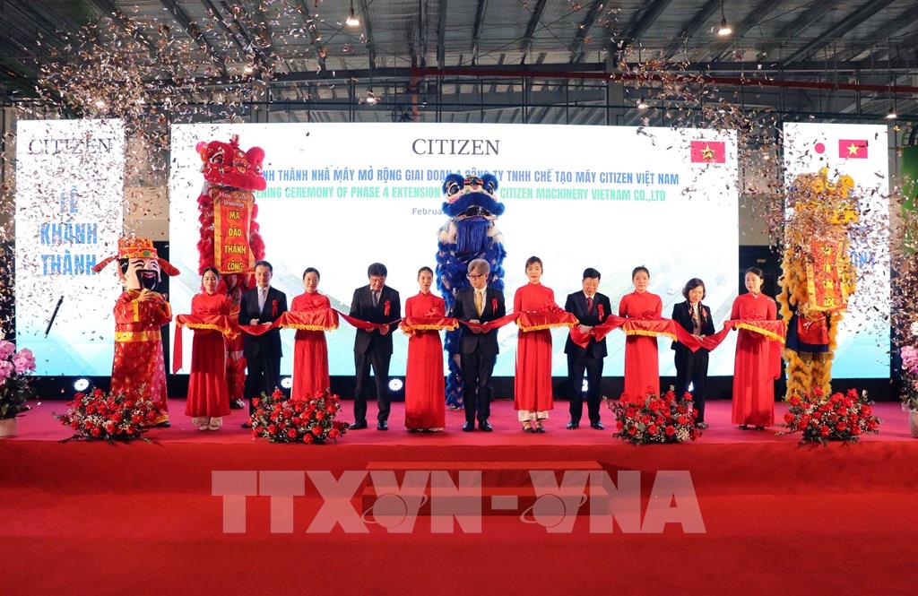 Ông Lê Trung Kiên, Phó Chủ tịch UBND thành phố Hải Phòng cùng lãnh đạo Công ty TNHH Chế tạo máy Citizen Việt Nam cắt băng khánh thành nhà máy mở rộng giai đoạn 4 tại Khu công nghiệp Nhật Bản – Hải Phòng. Ảnh: Hoàng Ngọc – TTXVN