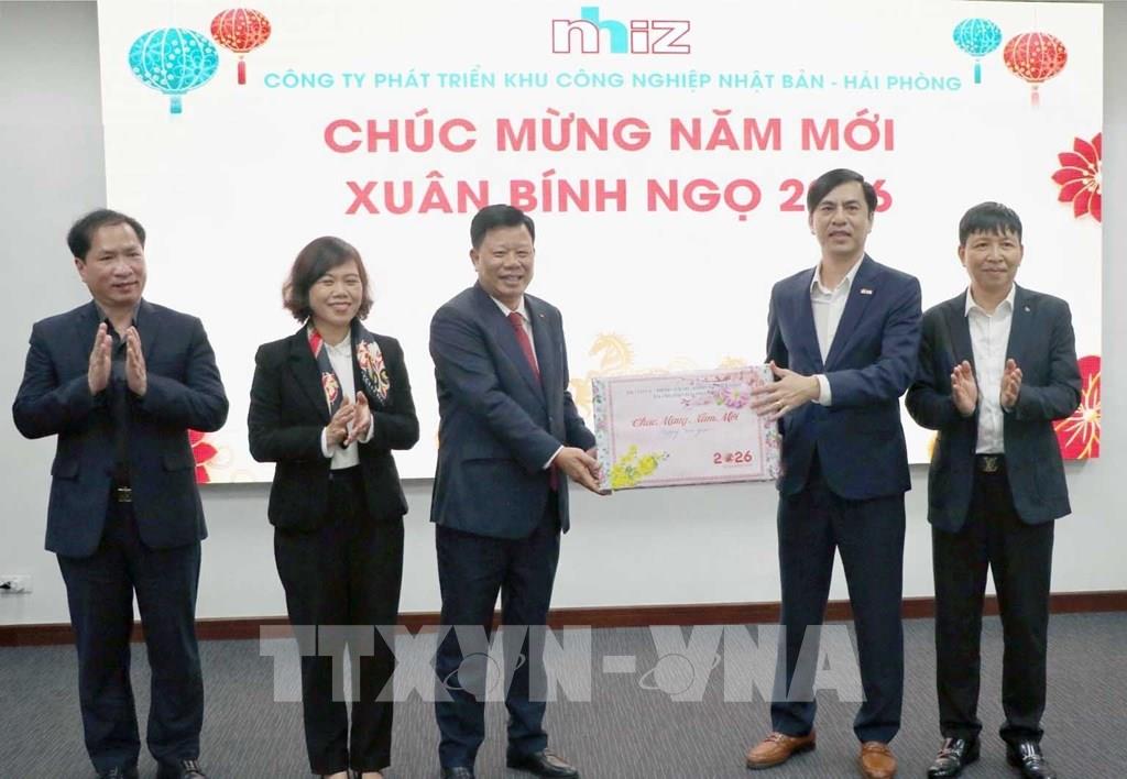 Ông Lê Trung Kiên, Phó Chủ tịch UBND thành phố Hải Phòng, tặng quà đầu năm tại Khu công nghiệp Nhật Bản – Hải Phòng. Ảnh: Hoàng Ngọc – TTXVN