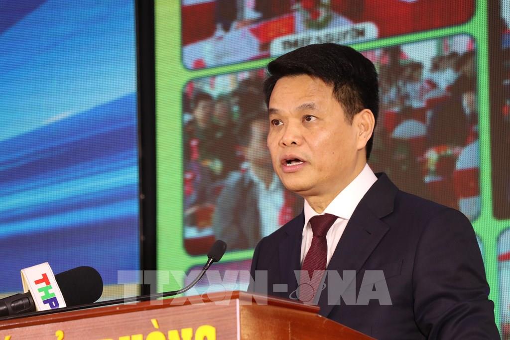 Chủ tịch UBND thành phố Hải Phòng Lê Ngọc Châu phát biểu tại lễ khởi công. Ảnh Tiến Vĩnh - TTXVN