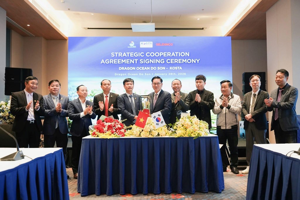 Ngày 28/1, Dragon Ocean Đồ Sơn (phường Đồ Sơn) và Hiệp hội Doanh nghiệp nhỏ và vừa (KOSTA) Hàn Quốc đã ký biên bản ghi nhớ hợp tác chiến lược giữa hai bên. Ảnh: phường Đồ Sơn
