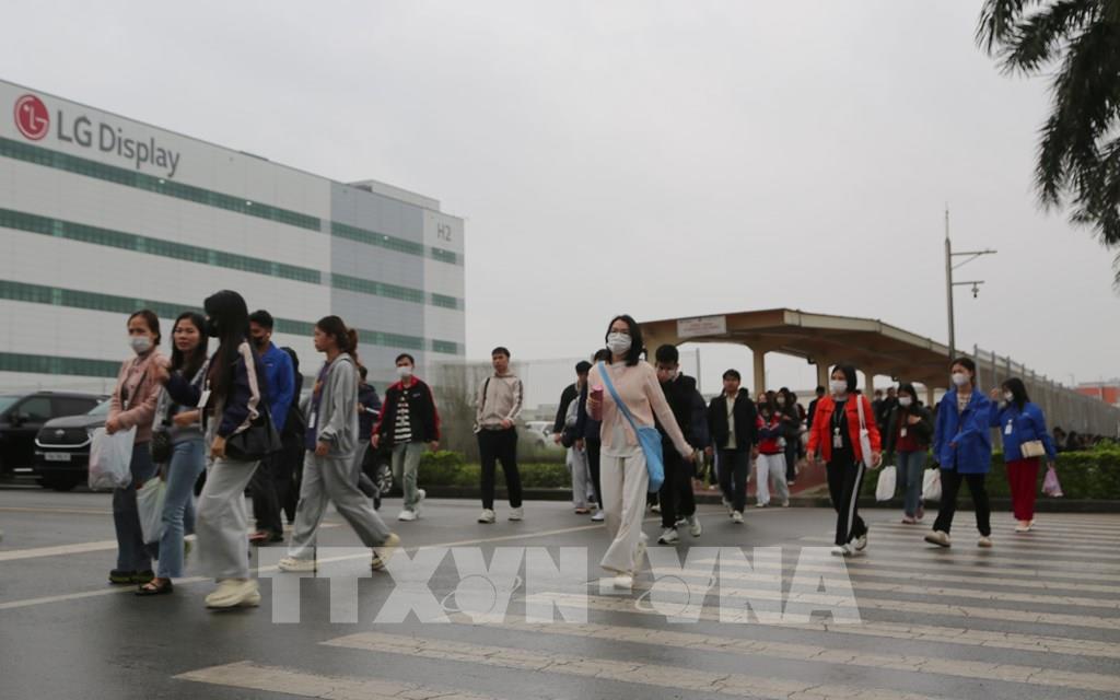 Người lao động di chuyển đến các doanh nghiệp trong Khu công nghiệp Tràng Duệ, Hải Phòng sáng 24/2. Ảnh: Minh Thu - TTXVN