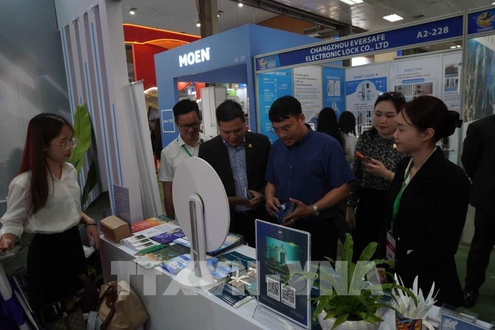 Các đại biểu và đối tác tham quan gian hàng trưng bày của Du lịch Hải Phòng tại Hội chợ. Ảnh: Mạnh Minh- TTXVN