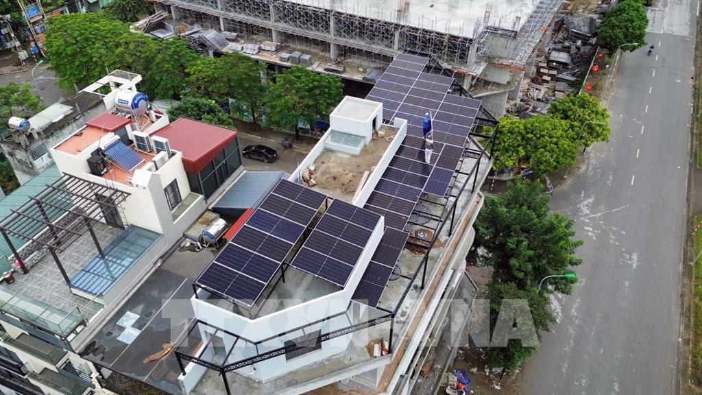 Lắp đặt hệ thống điện mặt trời mái nhà tại các hộ dân phường Ngô Quyền, thành phố Hải Phòng. Ảnh: Hoàng Ngọc – TTXVN