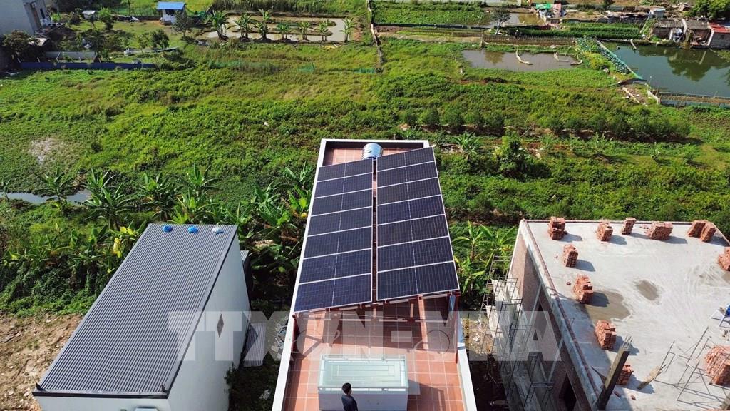 Lắp đặt hệ thống điện mặt trời mái nhà tại các hộ dân phường Kiến An, thành phố Hải Phòng. Ảnh: Hoàng Ngọc – TTXVN