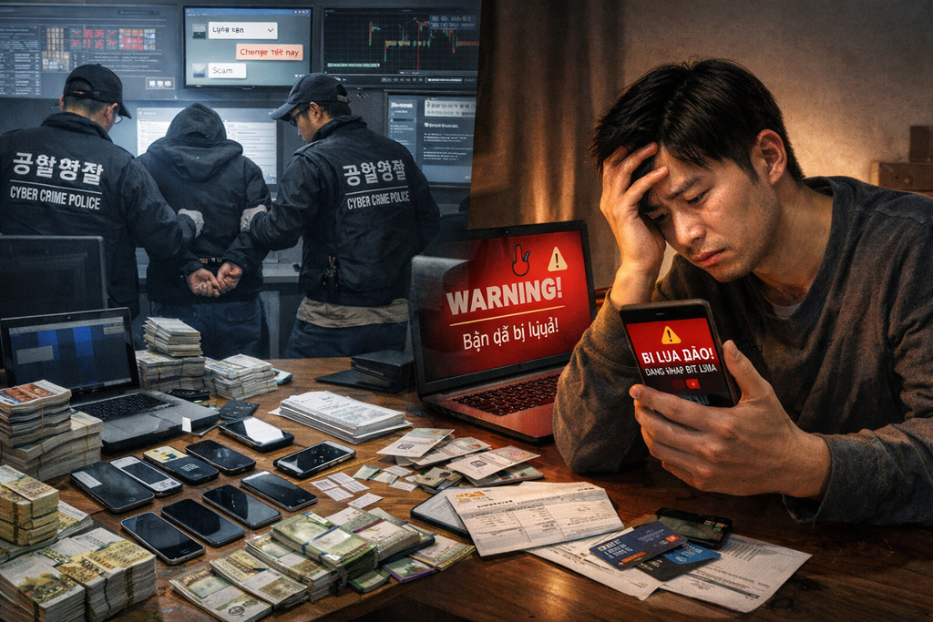 Hàn Quốc: Lừa đảo trực tuyến bùng phát dịp Tết, thiệt hại ngày càng nghiêm trọng. Ảnh do chat GPT thiết kế