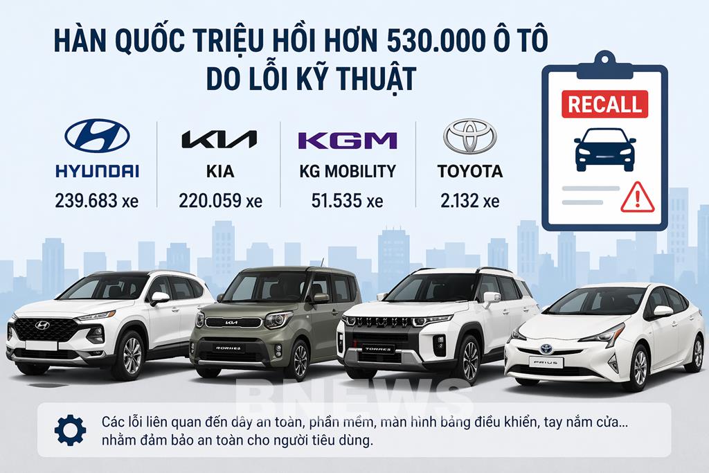 Hàn Quốc triệu hồi hơn 530.000 ô tô do lỗi kỹ thuật
