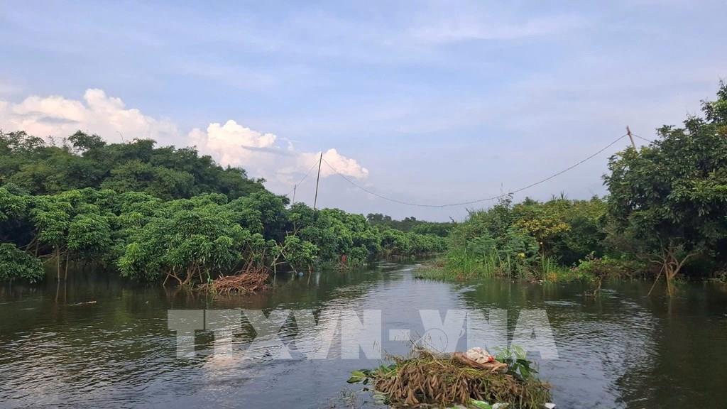 Vườn nhãn của người dân ấp Tân Rú, xã Hồ Tràm ngập trong nước. Ảnh: Hoàng Nhị - TTXVN