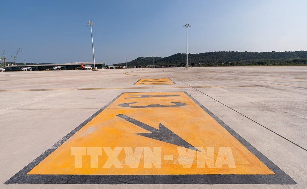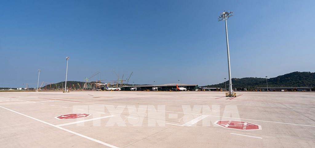 Hạng mục công trình khu vực sân đỗ 1C của dự án đầu tư mở rộng Cảng hàng không quốc tế Phú Quốc đã “cán đích”. Ảnh: TTXVN phát