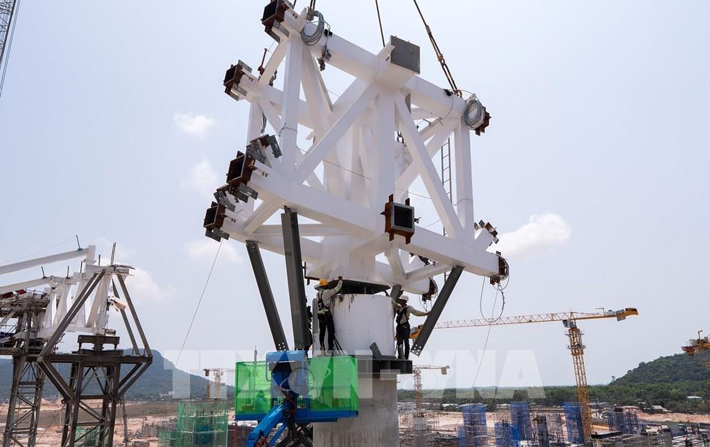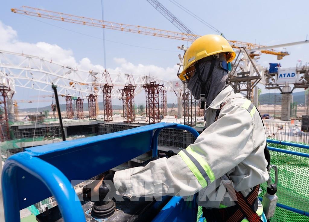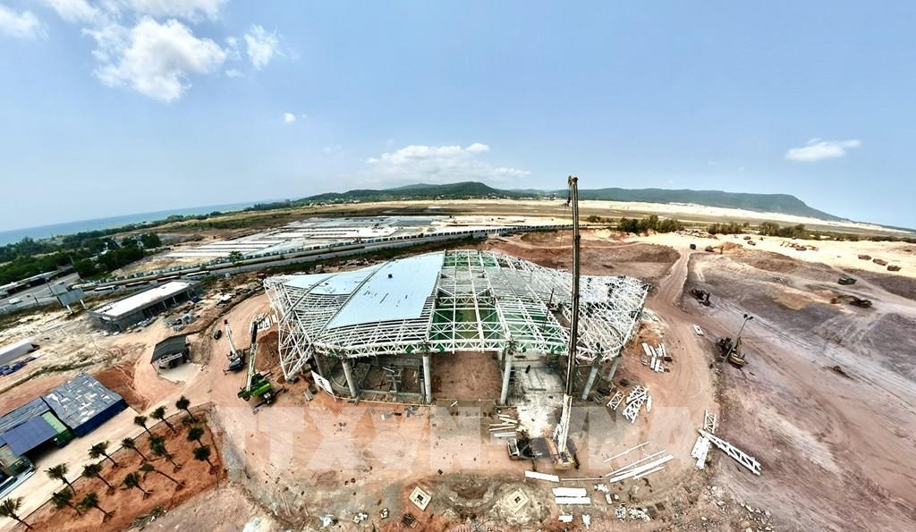 Thi công dự án đầu tư mở rộng Cảng hàng không quốc tế Phú Quốc tại đặc khu Phú Quốc. Ảnh: TTXVN phát