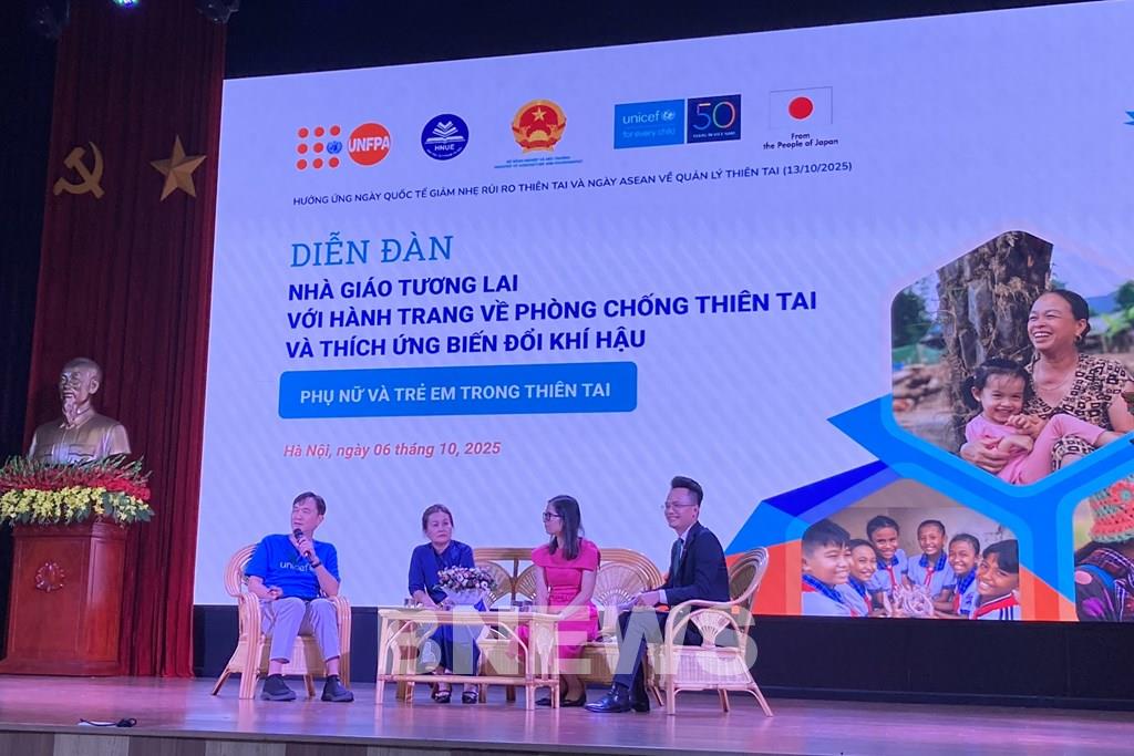 Chiều 6/10, tại Hà Nội, Cục Quản lý đê điều và Phòng chống thiên tai (Bộ Nông nghiệp và Môi trường) phối hợp với Quỹ Nhi đồng Liên hợp quốc tại Việt Nam (UNICEF), Quỹ Dân số Liên hợp quốc (UNFPA) tổ chức Diễn đàn “Nhà giáo tương lai với hành trang về Phòng chống thiên tai và thích ứng biến đổi khí hậu” với chủ đề Phụ nữ và trẻ em trong thiên tai.