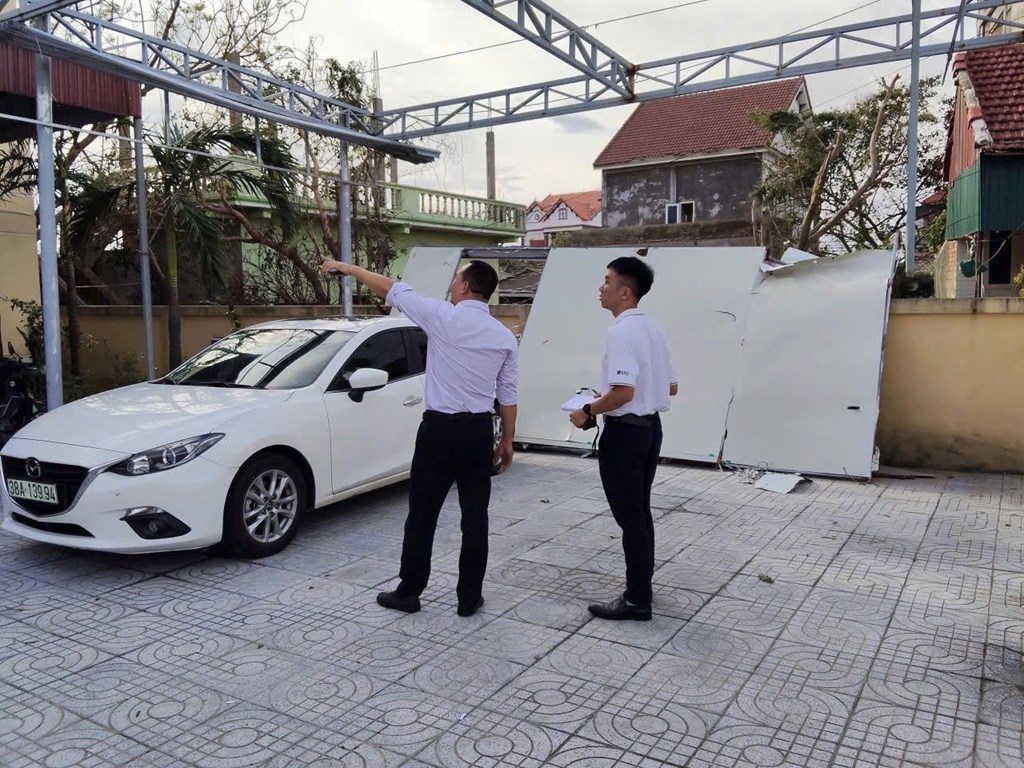 Ngay trong những giờ đầu tiên xảy ra bão lũ, các hình ảnh hiện trạng tổn thất tại các điểm tâm bão đã được gửi lên nhóm bồi thường. Những chỉ đạo quyết liệt từ Ban Lãnh đạo công ty, Ban Giám định bồi thường, những giám định viên không ngại mưa gió mạo hiểm vượt đường trơn trượt, ngập nước để tiến hành khảo sát, đo đạc, lập biên bản thiệt hại - “đi trước” để giúp người dân làm hồ sơ. Họ mang theo cả máy móc, thiết bị cần thiết đến tận nơi, chụp ảnh, đo đạc, xác minh hiện trạng để đảm bảo đánh giá chính xác, khách quan.