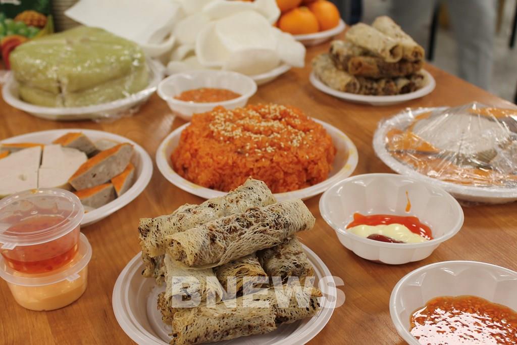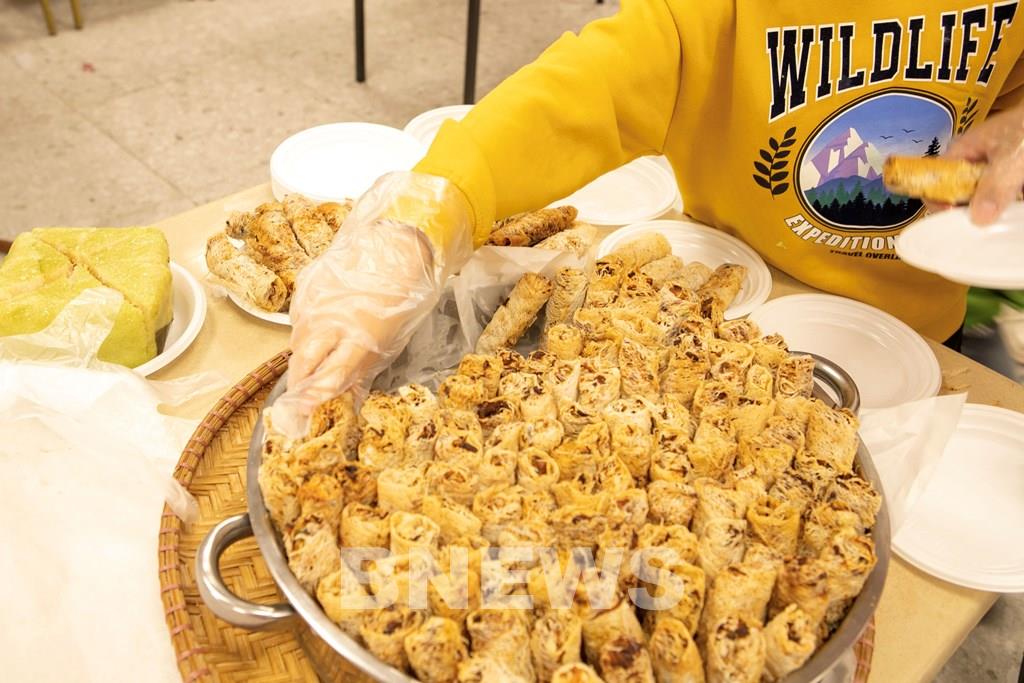 “Không gian Tết” vẫn hiện hữu qua mâm cỗ giản dị với nem rán, canh măng, giò, xôi. Ảnh: Bnews/vnanet.vn