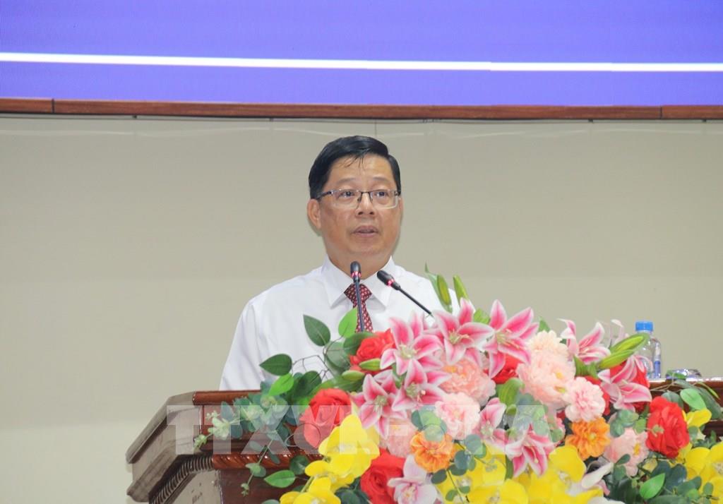 Ông Trần Thanh Nguyên, Phó Chủ tịch HĐND tỉnh Đồng Tháp, phát biểu tài Kỳ họp. Ảnh: Đức Tâm - TTXVN