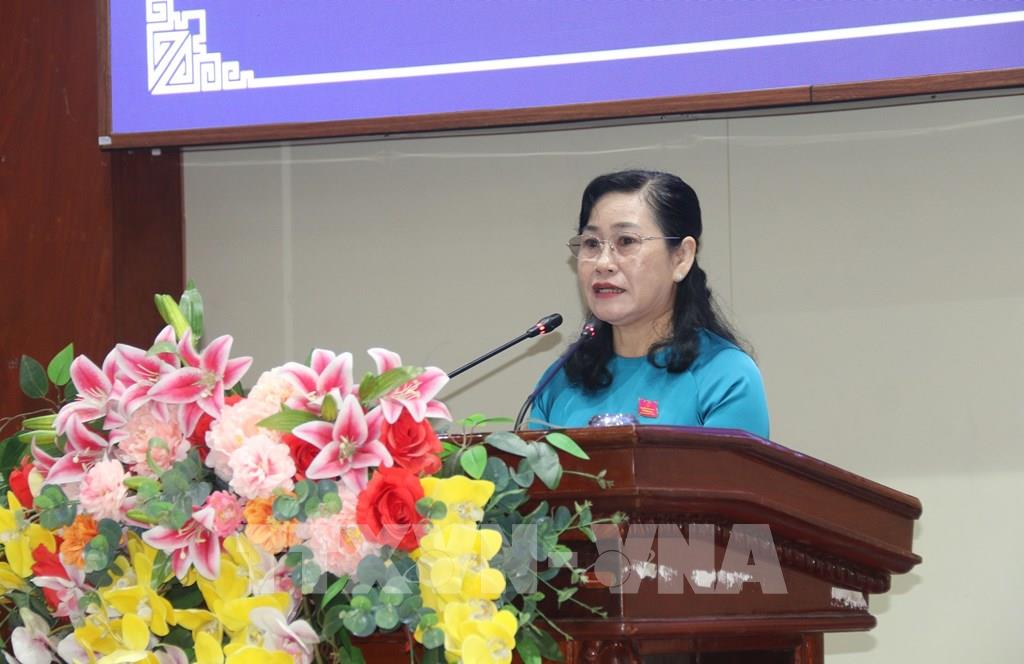 Bà Châu Thị Mỹ Phương, Chủ tịch HĐND tỉnh Đồng Tháp, phát biểu tại Kỳ họp. Ảnh: Đức Tâm - TTXVN