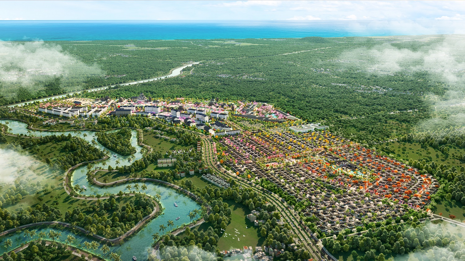 Phân khu Koto nắm giữ vị trí đắc địa trong quần thể Sun Beauty Onsen. Ảnh phối cảnh minh họa