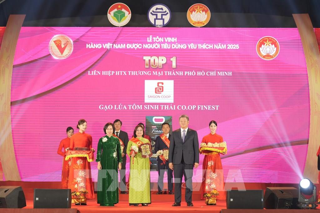 Sản phẩm Gạo lúa Tôm sinh thái Co.op Fitnest đạt TOP 1 trong Chương trình “Bình chọn Hàng Việt Nam được người tiêu dùng yêu thích” năm 2025. Ảnh: Phương Anh-TTXVN