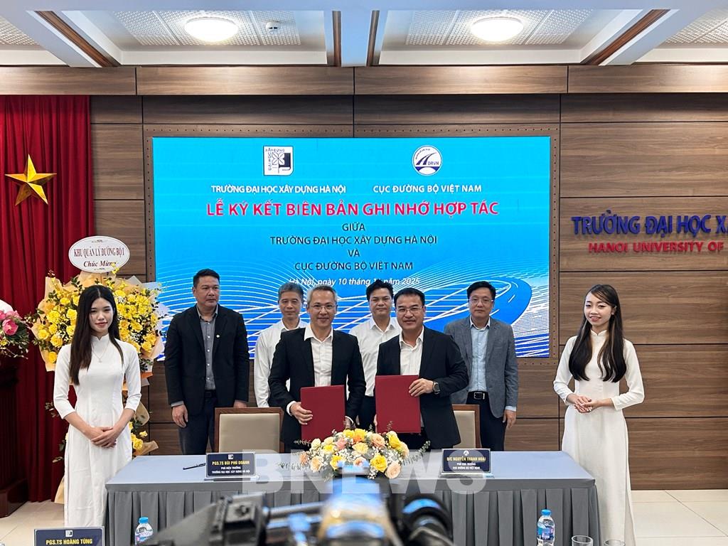 Trường Đại học Xây dựng và Cục Đường bộ Việt Nam ký biên bản hợp tác ghi nhớ nhằm thúc đẩy hợp tác trong đào tạo, nghiên cứu khoa học và ứng dụng công nghệ trong lĩnh vực hạ tầng giao thông đường bộ. Ảnh: Diệp Anh/Bnews/Vnanet.vn