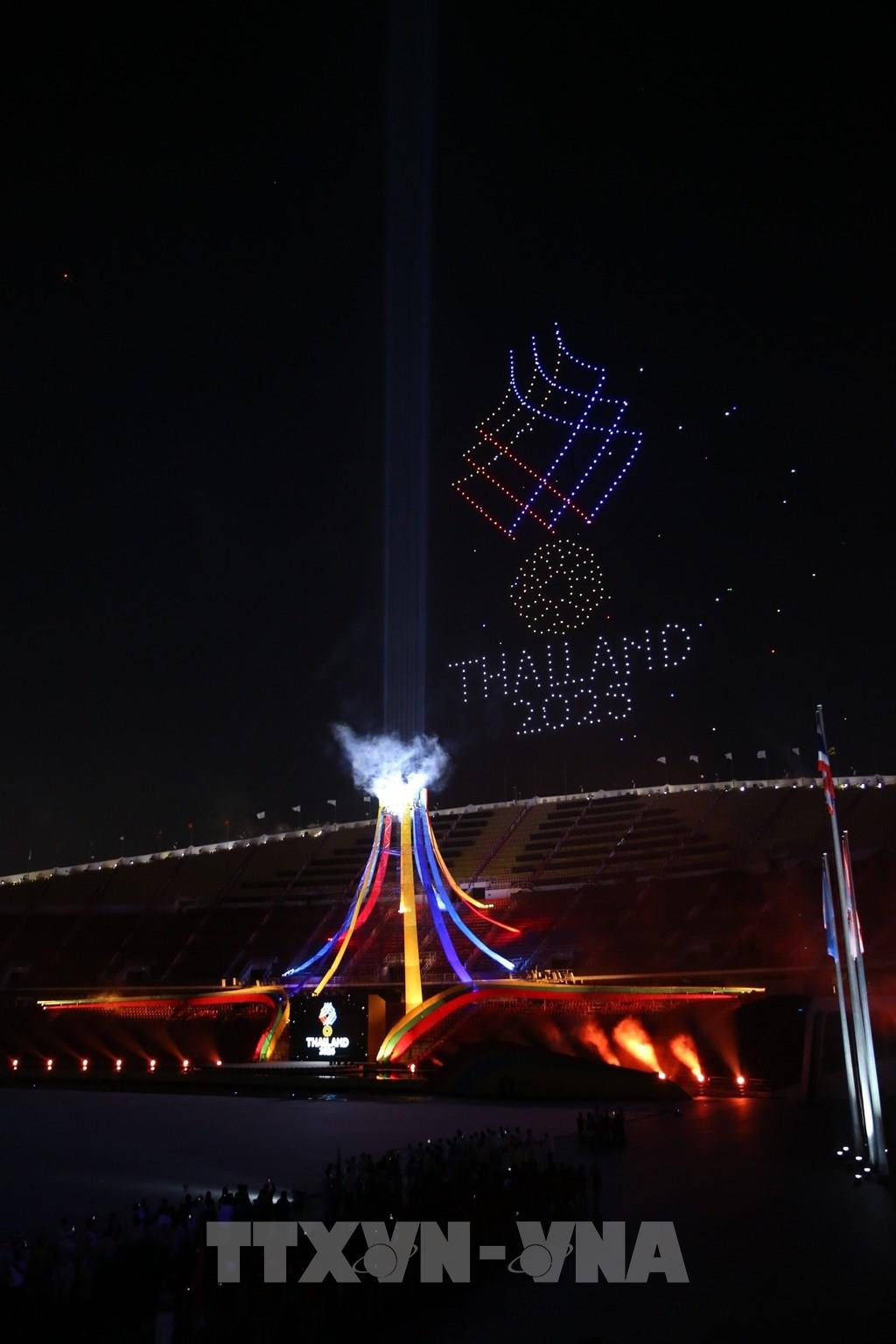 Ngọn đuốc được thắp sáng tại lễ khai mạc SEA Games 33. Ảnh: Minh Quyết - PV TTXVN