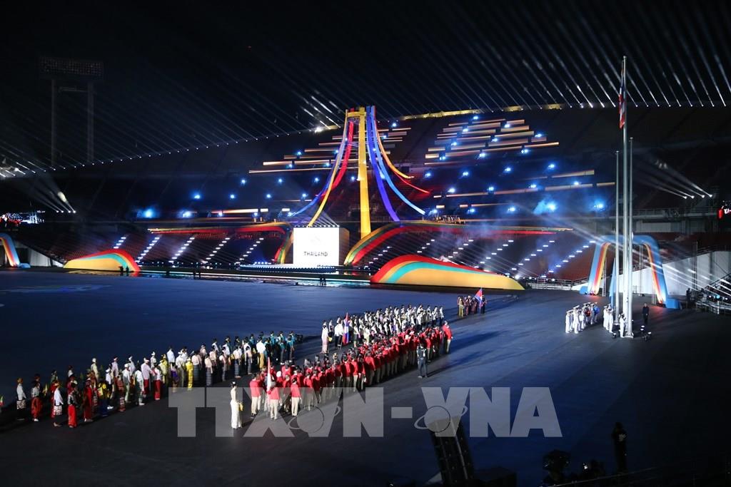 Nghi thức thượng cờ Thái Lan và Liên đoàn SEA Games, cùng những tuyên thệ của vận động viên, các trọng tài. Ảnh: Minh Quyết - PV TTXVN