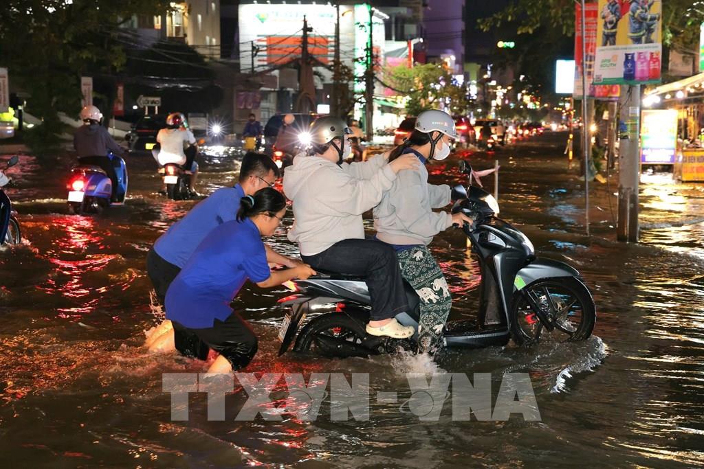 Rạng sáng 23/10, mưa lớn kéo dài gây ngập sâu, nước chảy xiết tại khu phố Cầu Đôi và khu phố Long Hưng (phường Bến Cát, thành phố Hồ Chí Minh), nhiều hộ dân bị cô lập, không thể di chuyển ra ngoài.