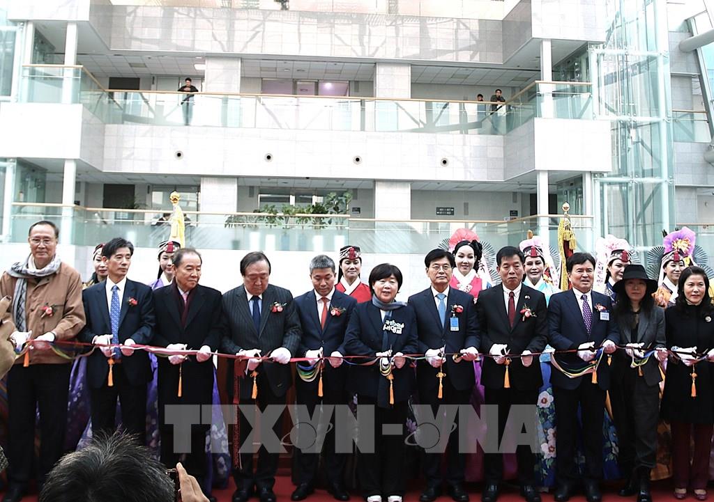 Nghi thức cắt băng khai mạc Triển lãm. Ảnh: Khánh Vân – PV TTXVN tại Hàn Quốc