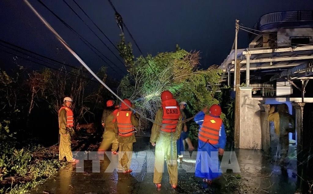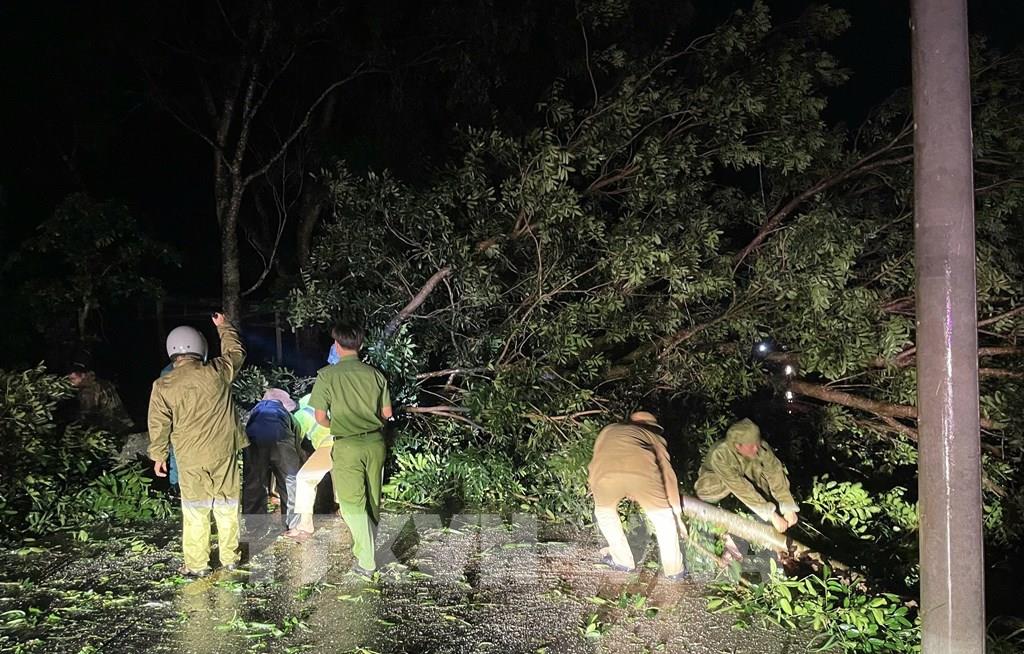 Lực lượng chức năng kịp thời khắc phục hậu quả thiên tai. Ảnh: TTXVN phát