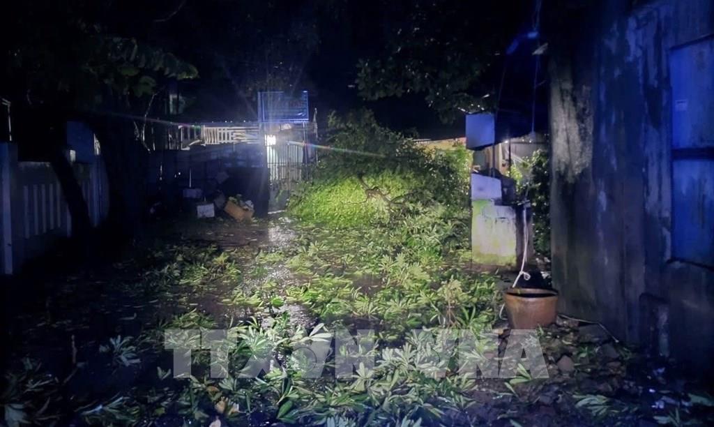 Nhiều cây xanh tại tỉnh Đắk Lắk ngã đổ ra đường sau khi bão vào đất liền. Ảnh: TTXVN phát