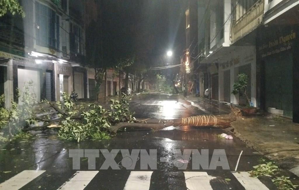 Cây cối ngã đổ ra đường sau bão số 13. Ảnh: TTXVN phát
