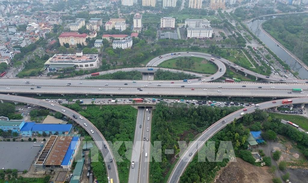 Mật độ giao thông tại nút giao vành đai 3 với cao tốc Pháp Vân - Cầu Giẽ lúc 9h ngày 30/4. Ảnh: Quốc Khánh - TTXVN