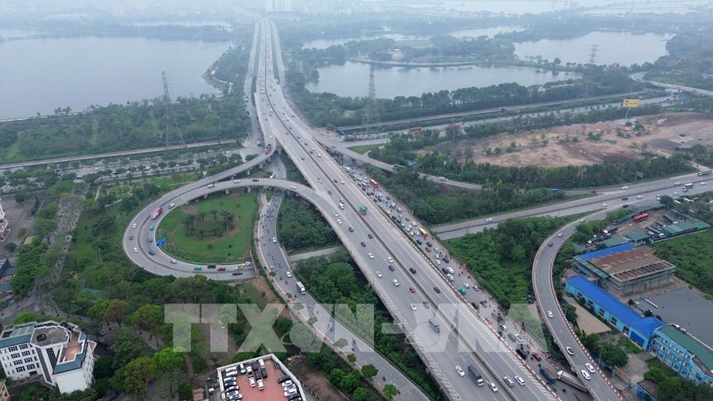 Lượng phương tiện lưu thông bắt đầu tăng cao trên đường vành đai 3 trên cao đoạn qua Linh Đàm và đường Giải Phóng đi hướng Quốc lộ 1. Ảnh: Quốc Khánh - TTXVN