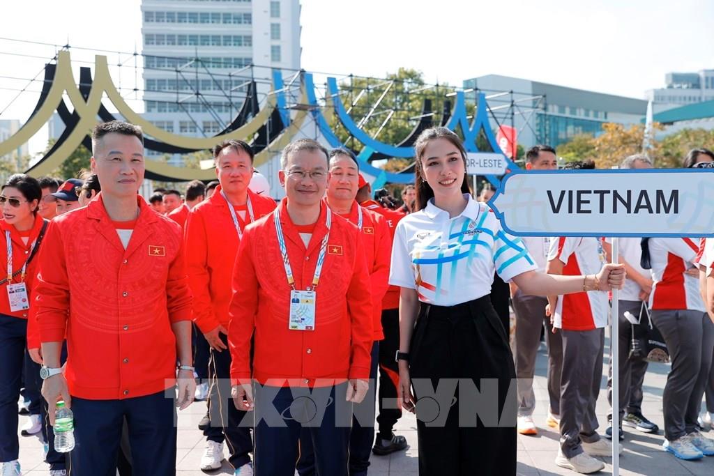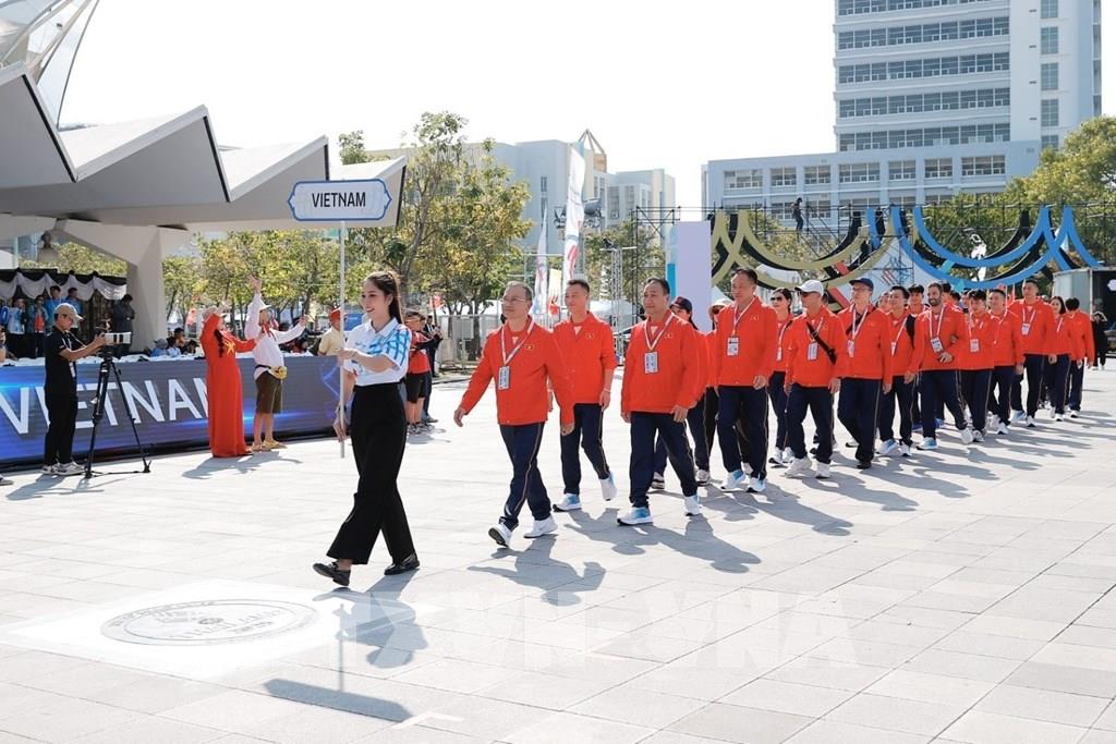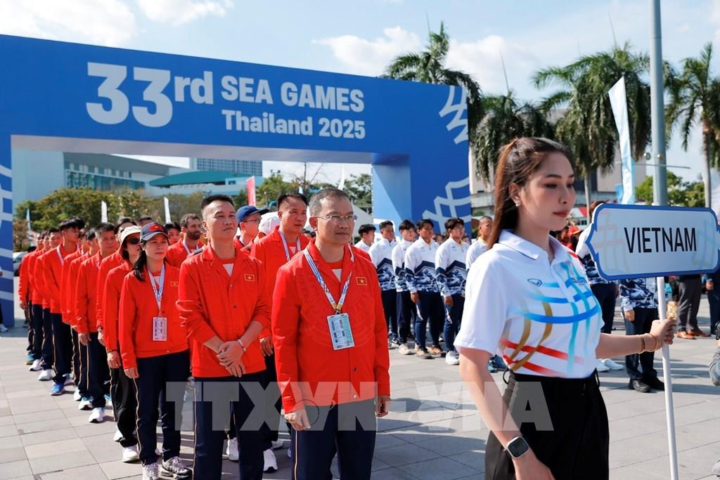 Đoàn thể thao Việt Nam tham dự lễ thượng cờ SEA Games 33. Ảnh: Minh Quyết - PV TTXVN