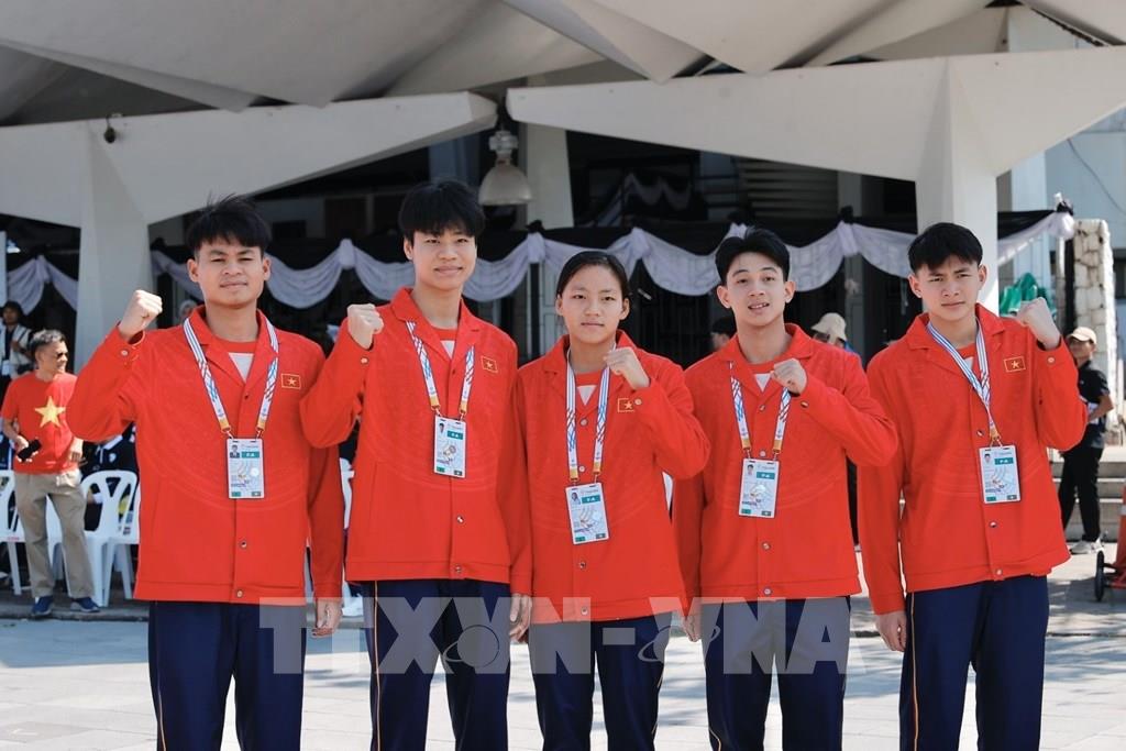 Lễ thượng cờ đoàn thể thao Việt Nam tại SEA Games 33. Ảnh: Minh Quyết - PV TTXVN