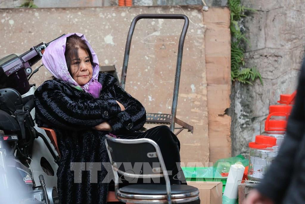 Một người bán hàng co ro trong tiết trời lạnh. Ảnh: Hoàng Hiếu - TTXVN