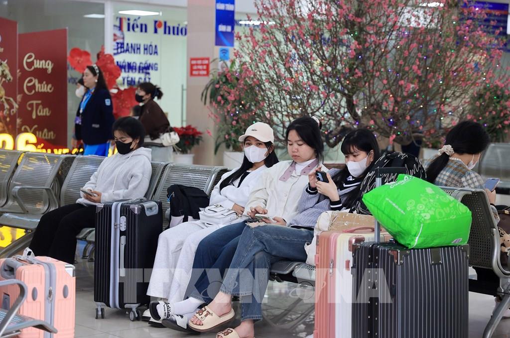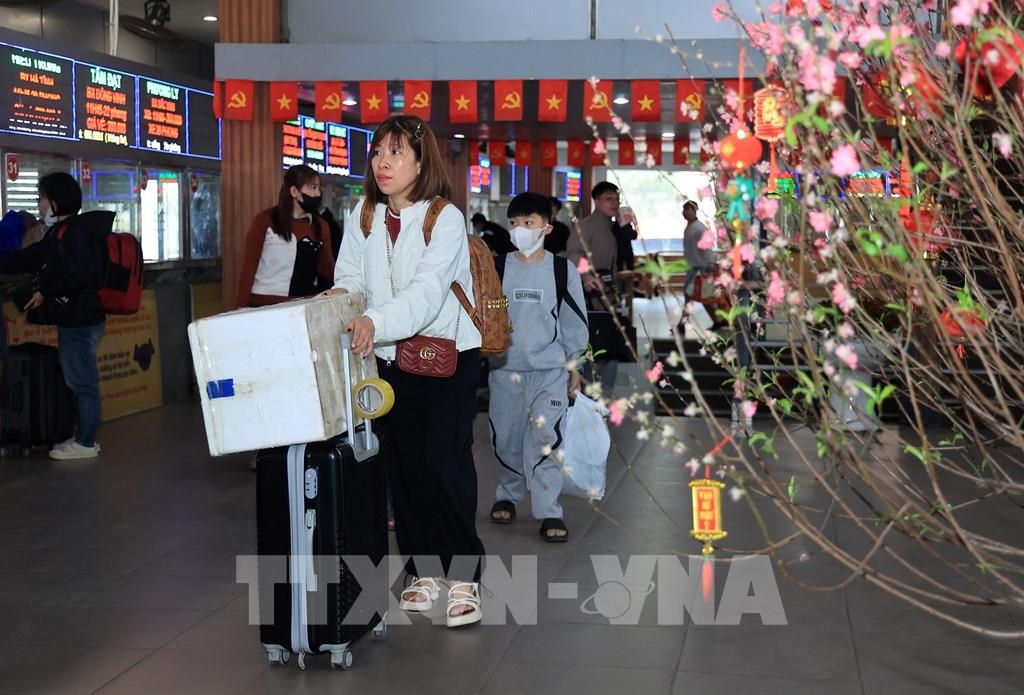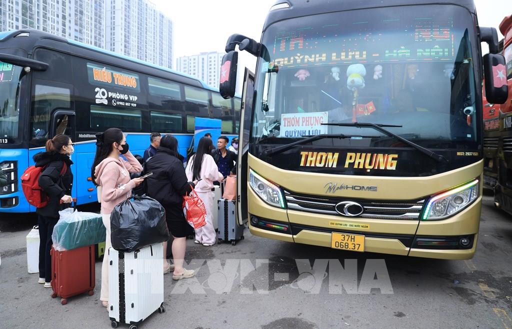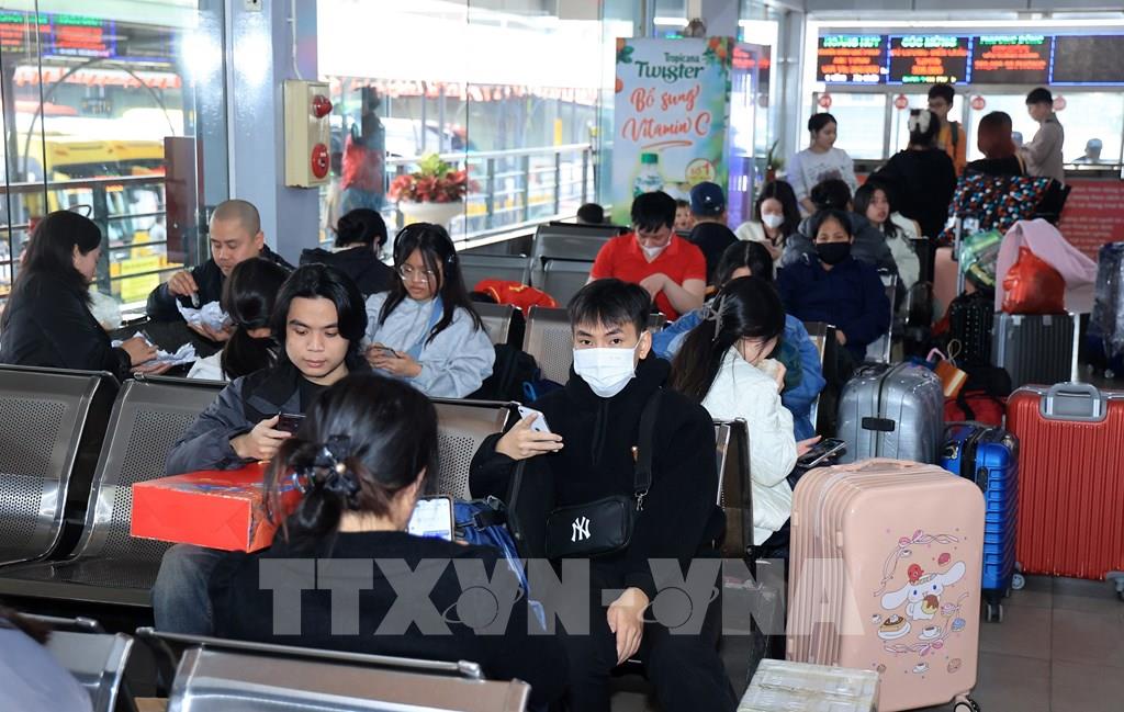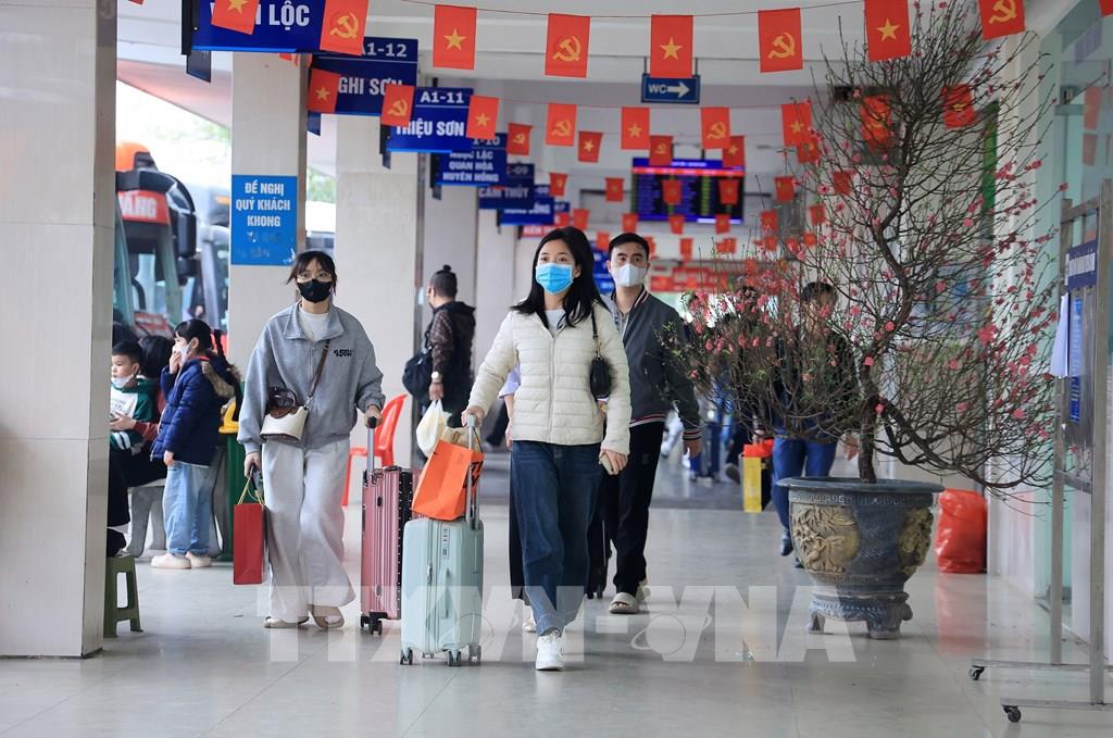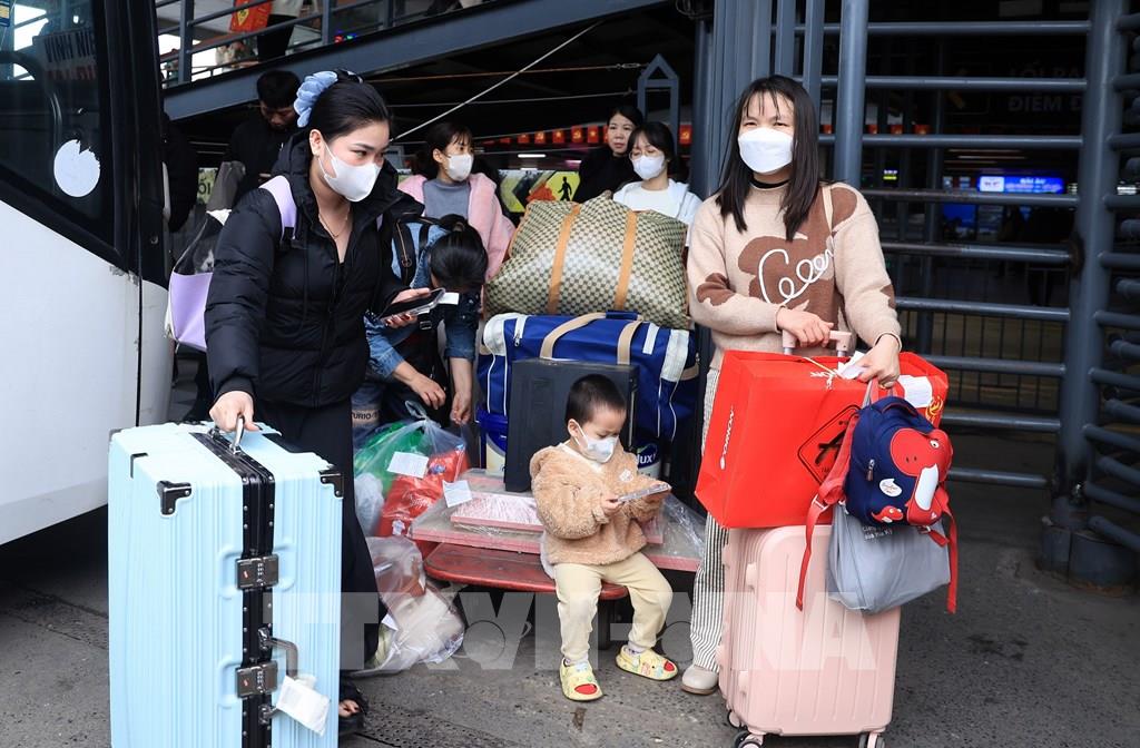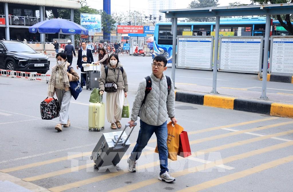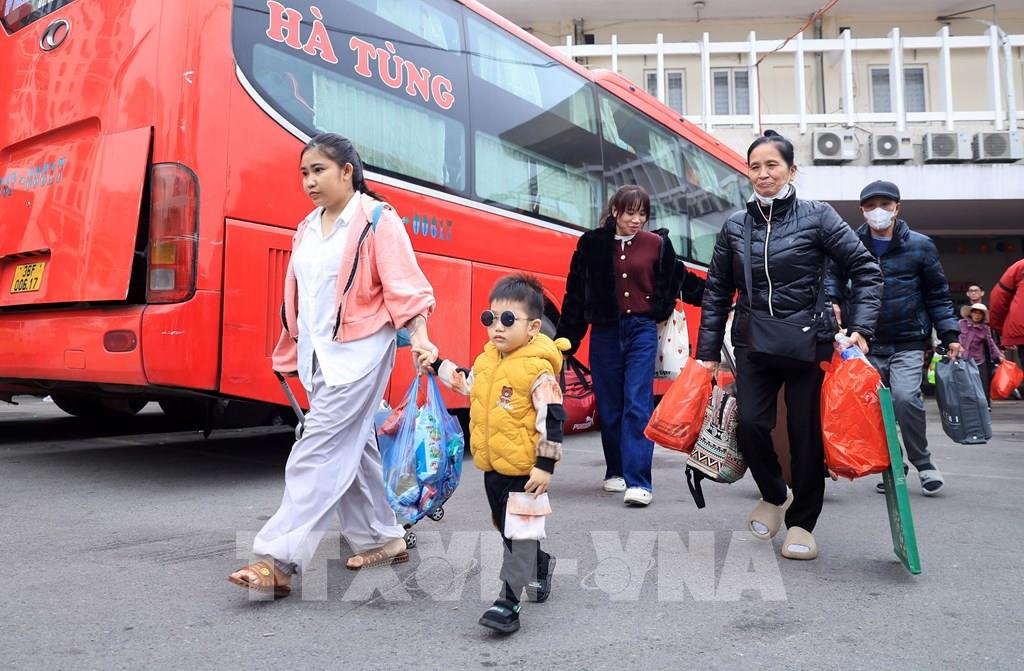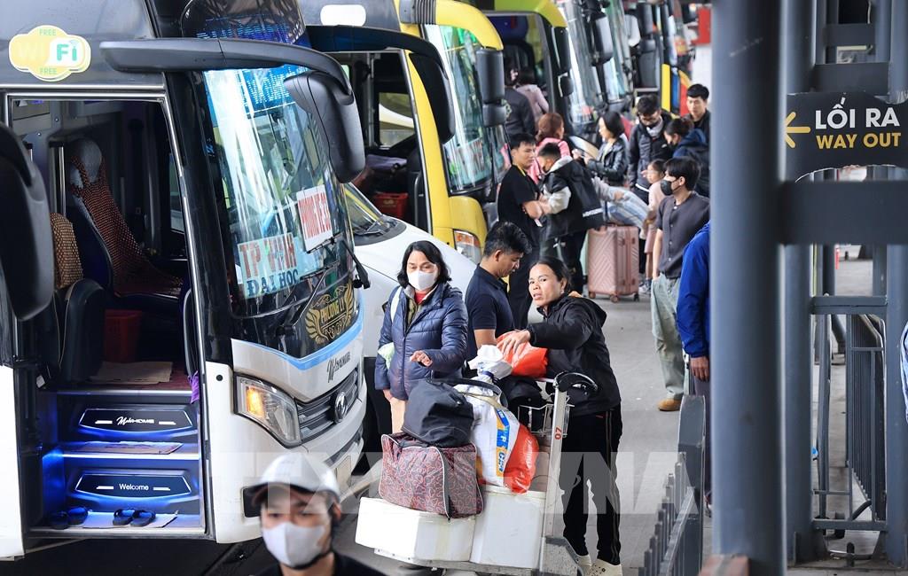 Người dân rời Hà Nội từ bến xe Giáp Bát, chiều 13/2. Ảnh: Quốc Khánh - TTXVN