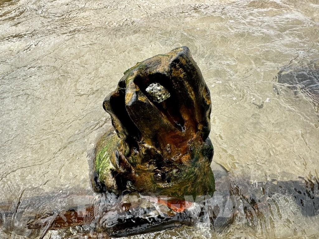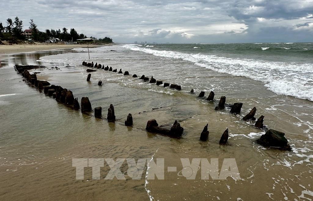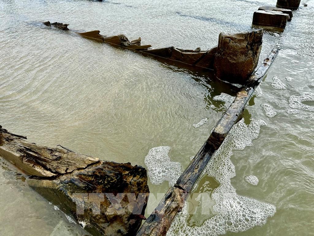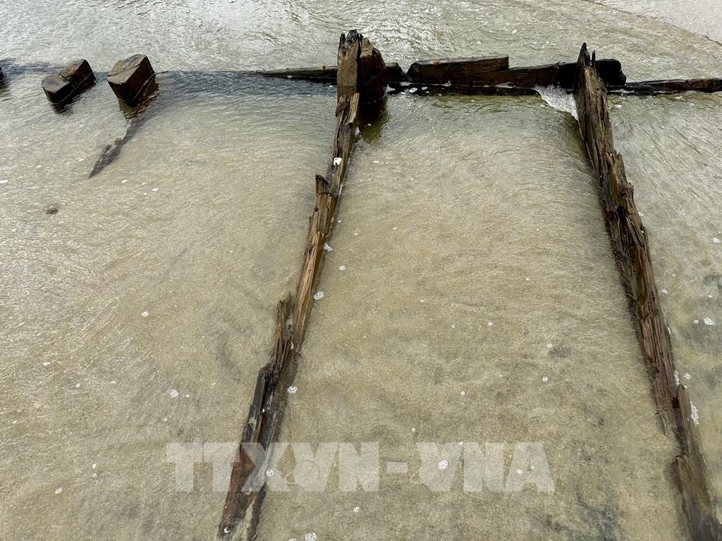 Hình ảnh tàu cổ phát lộ ở bờ biển Hội An