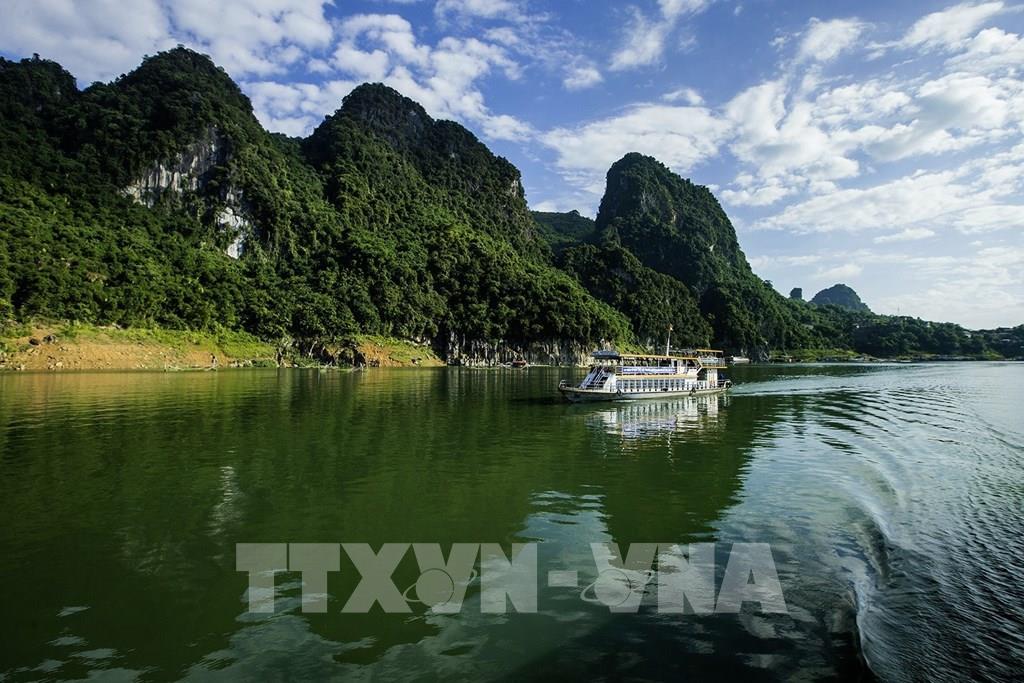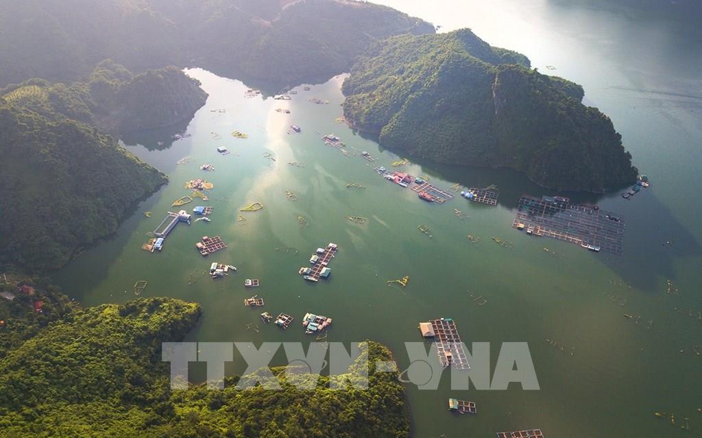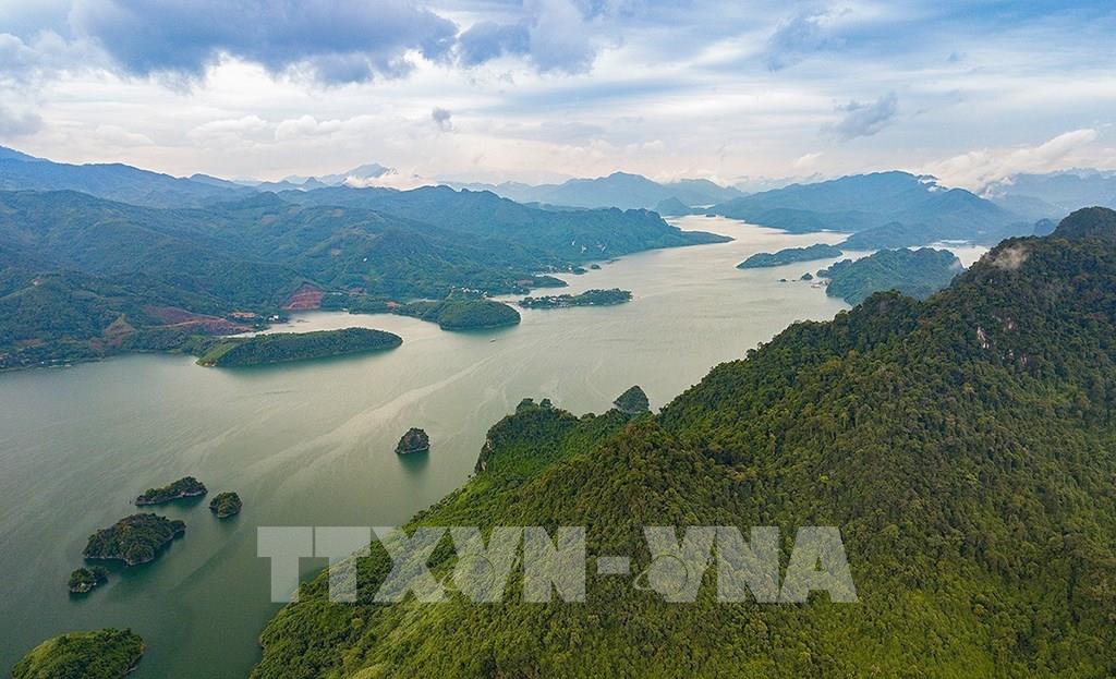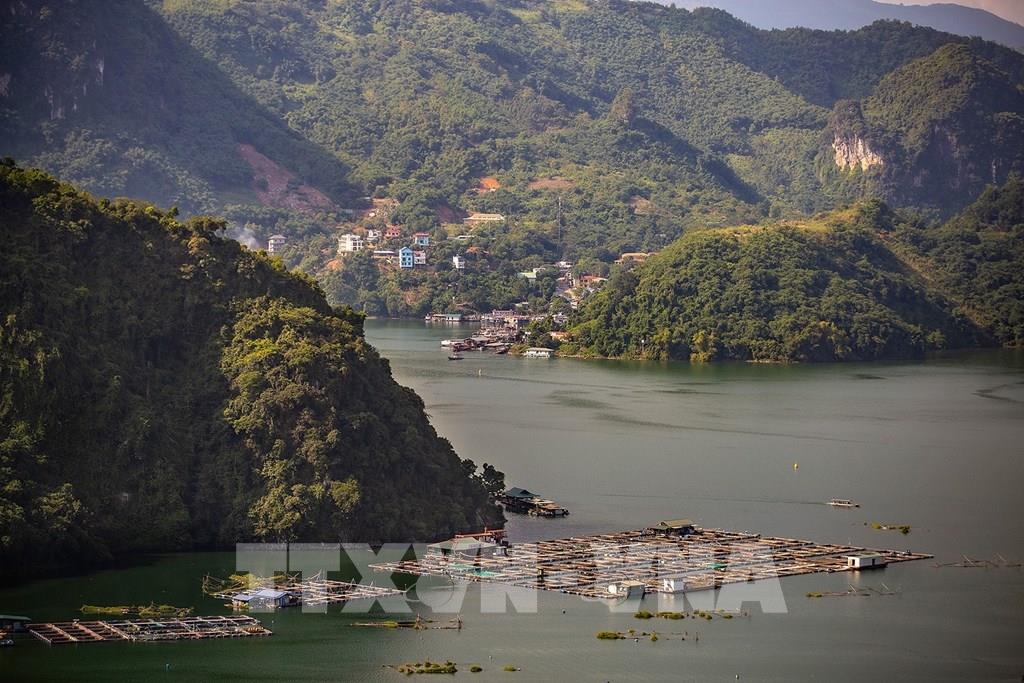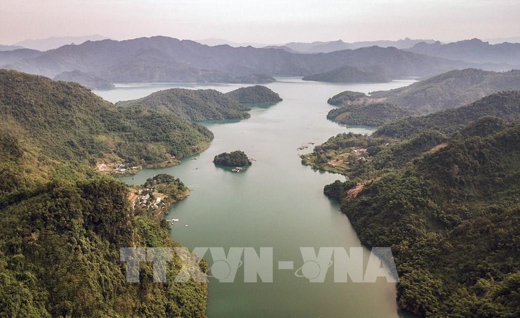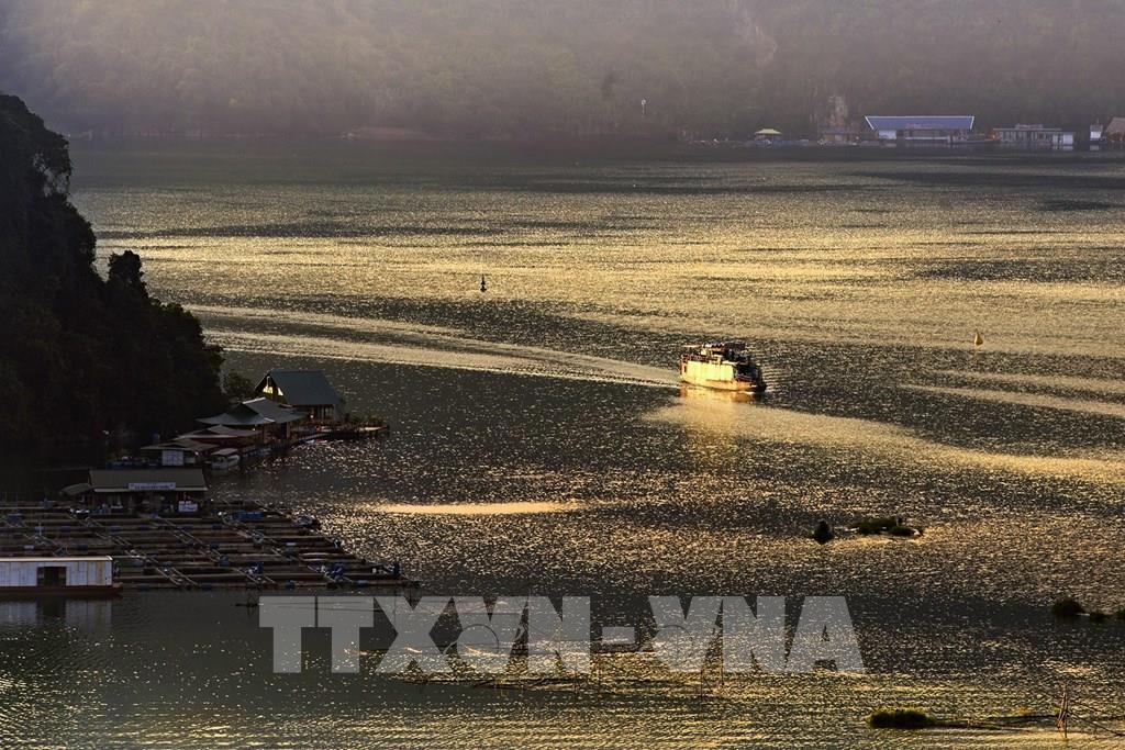 Cảnh quan trên hồ Hòa Bình được ví như Vịnh Hạ Long của vùng núi Tây Tắc hùng vĩ và nên thơ. Ảnh: Trọng Đạt-TTXVN