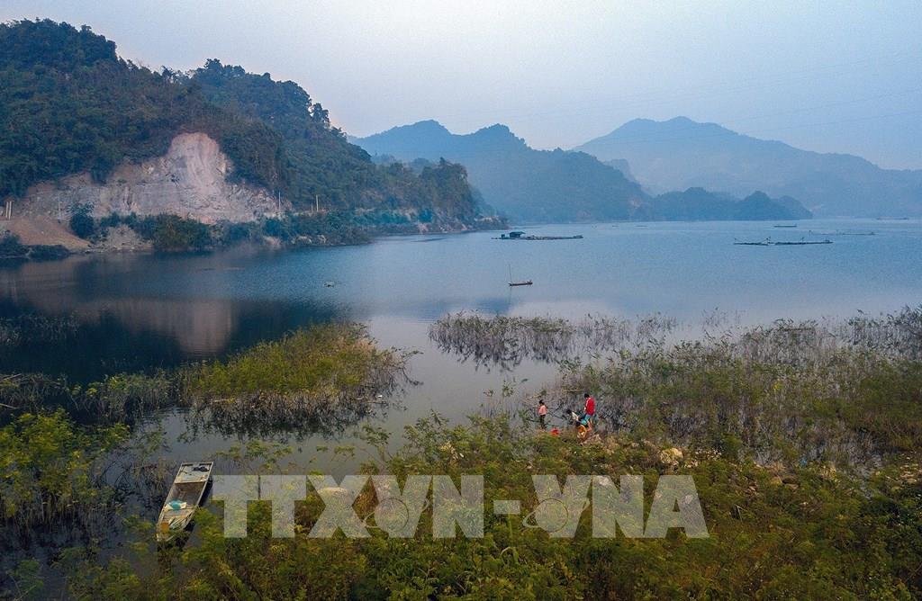 Với nước hồ xanh trong và cảnh quan hùng vĩ trong vùng lòng hồ thủy điện Hòa Bình trở thành điểm đến khó bỏ qua cho những du khách. Ảnh: Trọng Đạt-TTXVN