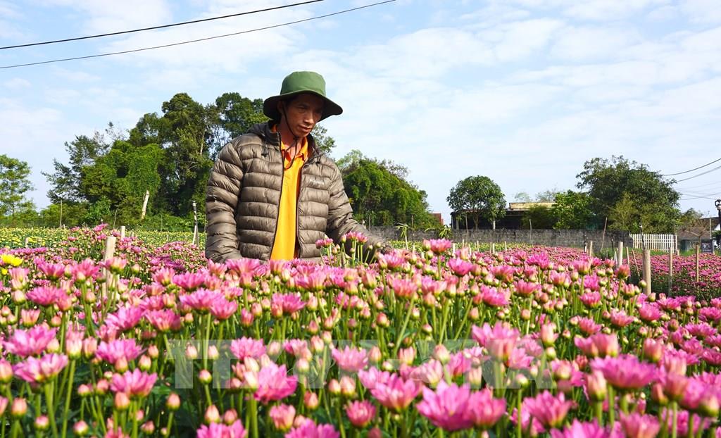 Ông Nguyễn Quang Huyên ở thôn 3, xã Nam Trạch trồng và chăm sóc khoảng 40.000 cây và cành hoa, sau khi trừ chi phí, gia đình dự kiến lãi khoảng 60 triệu đồng. Ảnh: Thanh Thuỷ-TTXVN