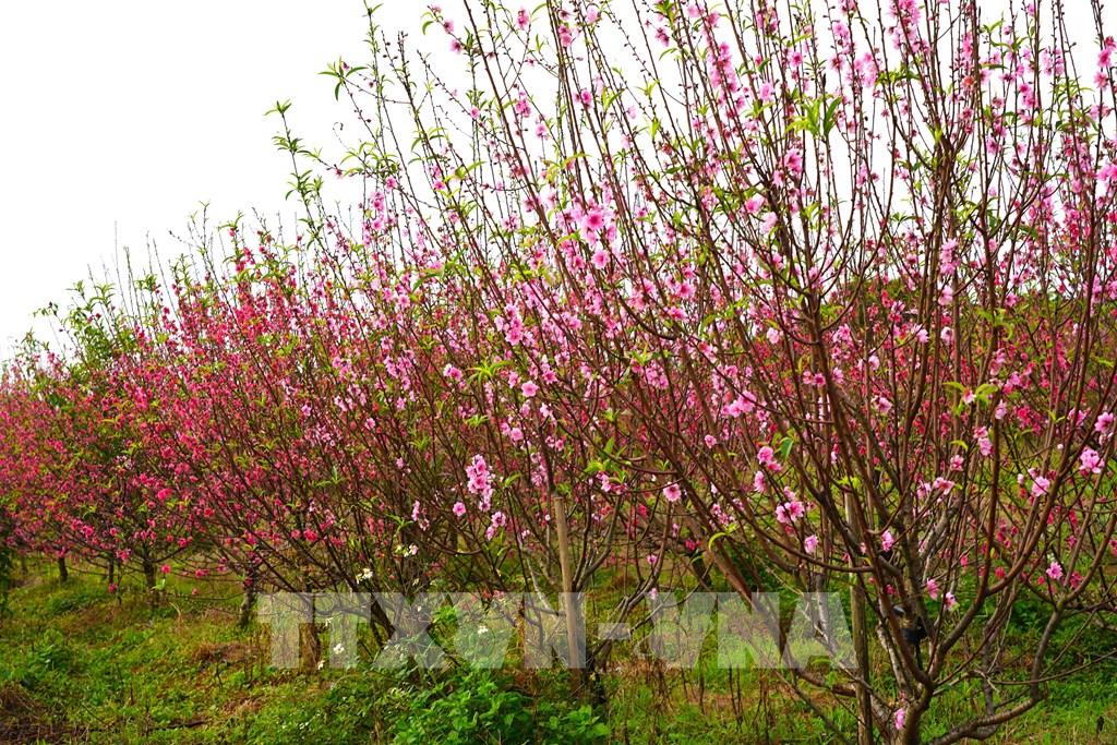 Một diện tích hoa đào nở sớm từ tháng Chạp, gây thất thu cho nhà vườn. Ảnh: Thanh Thuỷ-TTXVN