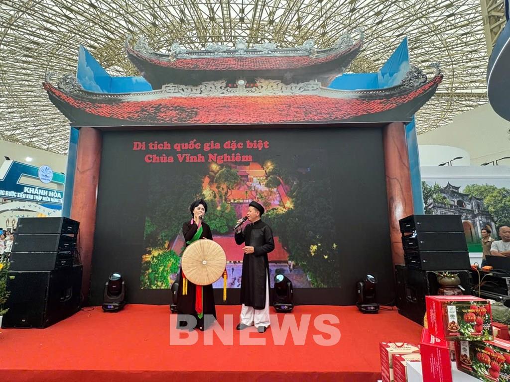 Biểu diễn nghệ thuật tại Khu trưng bày, giới thiệu các sản phẩm OCOP, sản phẩm đặc trưng, tiêu biểu tỉnh Bắc Ninh. Ảnh: Trần Trung/Bnews/vnanet.vn