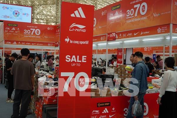 Khu vực "nóng" nhất hội chợ là các gian hàng thời trang thể thao, nơi hàng loạt thương hiệu lớn như Li-ning, Adidas, Nike, Asics, Le Coq Sportif... đồng loạt giảm giá cao nhất 70% cho một số mẫu.