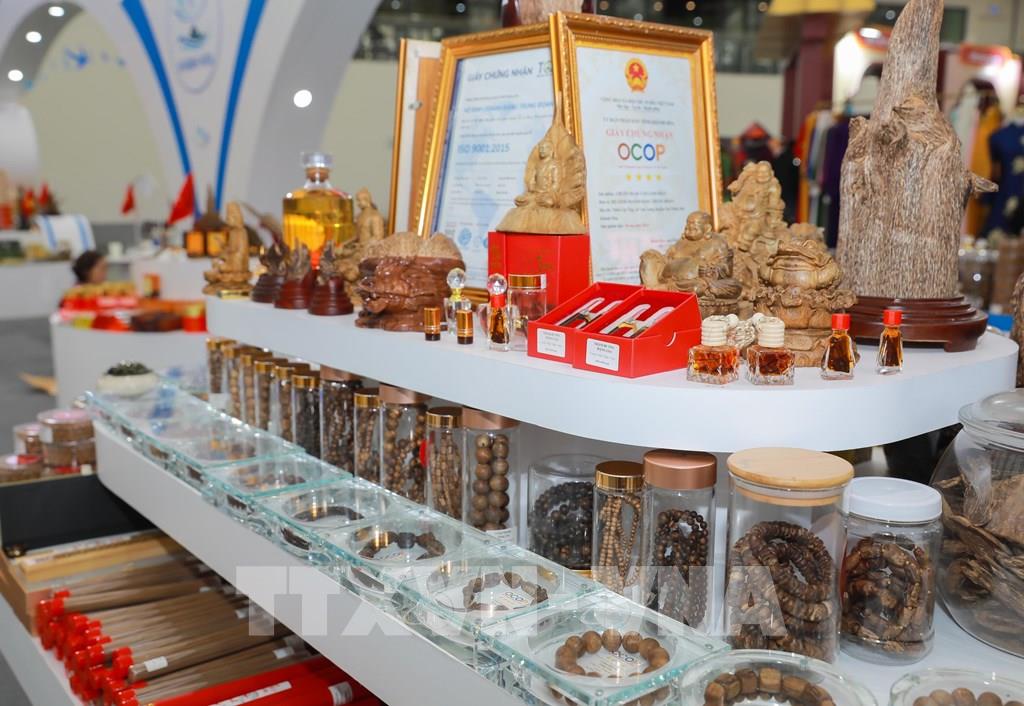 Các sản phẩm từ trầm hương của thuơng hiệu Đặng Gia nhiều năm đạt OCOP trưng bày tại gian hàng Khánh Hoà. Ảnh: Phan Phương – TTXVN