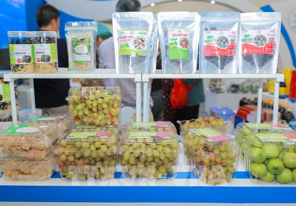 Các sản phẩm nho, táo và rong biển đạt tiêu chuẩn OCOP của cơ sở nông sản xanh Trang Huỳnh, xã Phước Dinh, tỉnh Khánh Hoà tại Hội chợ mùa Thu. Ảnh: Phan Phương – TTXVN