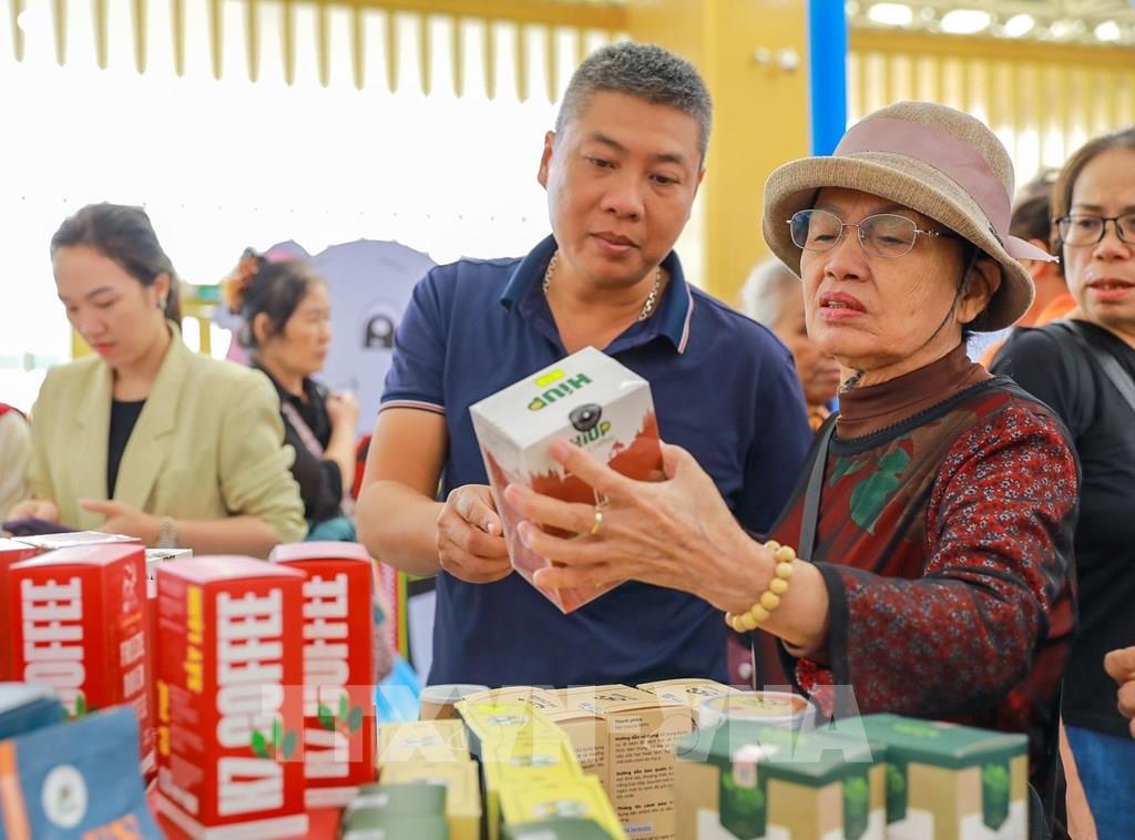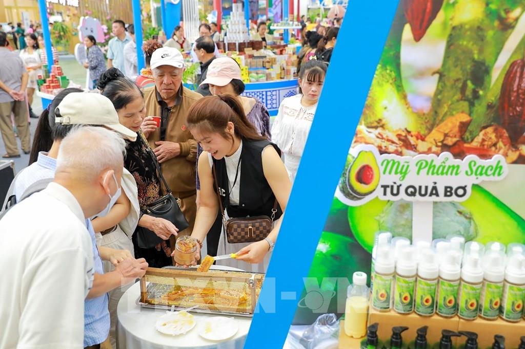 Sản phẩm Ocop 5 sao của địa phương được giới thiệu tại gian trưng bày. Ảnh: Khánh Hoà - TTXVN
