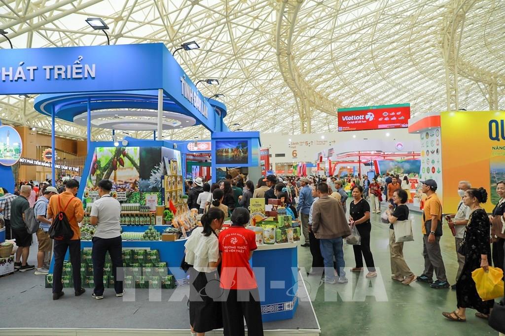 Gian hàng trưng bày, quảng bá sản phẩm đặc trưng, tiêu biểu của các địa phương đang là khu thu hút đông người dân và du khách tìm đến nhất. Ảnh: Khánh Hoà - TTXVN
