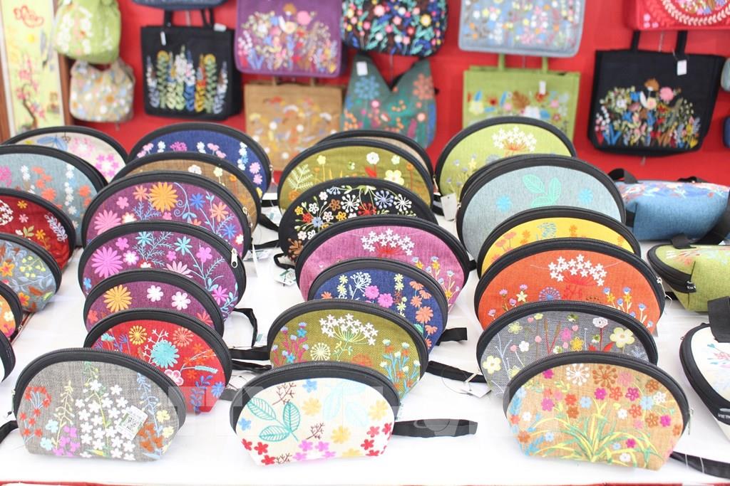 Sản phẩm thêu thủ công của thành phố Hà Nội được trưng bày tại hội chợ. Ảnh: Nguyễn Cúc - TTXVN